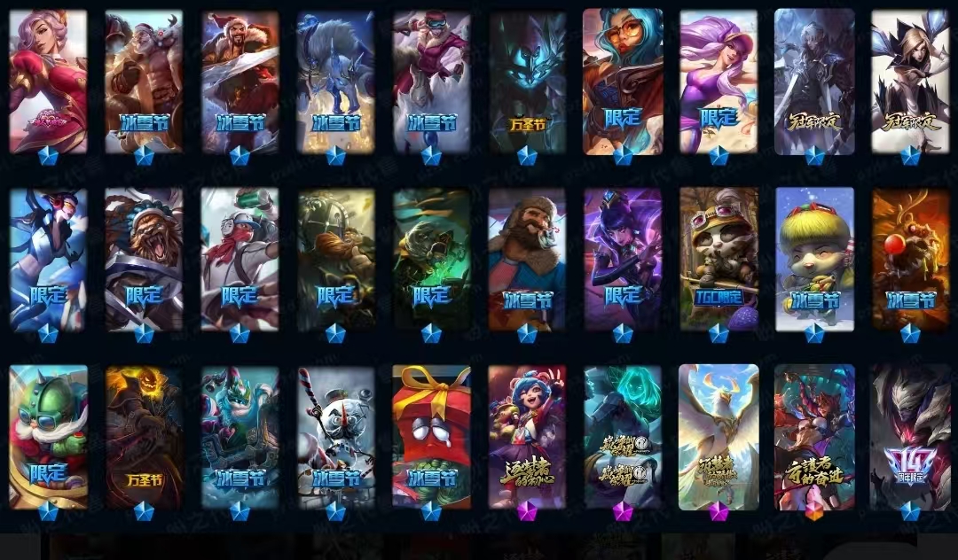 小红帽 安妮;#安伯斯与提妮;#科学怪熊的新娘 安妮;#银河魔装机神 安妮;#十周年纪念 安妮;#烈焰猛士 奥拉夫;#冰河时代 奥拉夫;#铁哥们儿 奥拉夫;#五杀摇滚鼓手 奥拉夫;#黑暗骑士 奥拉夫;#牛扒狂战 奥拉夫;#SKT T1 奥拉夫;#幽蓝梦魇 加里奥;#机械迷城 加里奥;#战地之王 加里奥;#地狱之门卫士 加里奥;#风执事 加里奥;#鸡里奥;#魔幻卡牌 崔斯特;#探戈灵魂 崔斯特;#皇家火枪手 崔斯特;#逆转裁判 崔斯特;#逍遥赌侠 崔斯特;#腥红之月 崔斯特;#未来战士 崔斯特;#特战先锋 赵信;#皇家守卫 赵信;#绞肉机角斗士 赵信;#翼骑统领 赵信;#赵云 子龙;#深渊巨蟹 厄加特;#电锯狂人 厄加特;#战地机甲 厄加特;#星之守护者COS 厄加特;#潮流女王 乐芙兰;#社会名流 乐芙兰;#幸福女神 乐芙兰;#邪鸦魅影 乐芙兰;#源代码 乐芙兰;#魔女 乐芙兰 至臻;#弗拉基米尔侯爵;#诺斯费拉图 弗拉基米尔;#霹雳游侠 弗拉基米尔;#摄魂男爵 弗拉基米尔;#学生会长 弗拉基米尔;#黑潮 弗拉基米尔;#幽魂 费德提克;#联合王国 费德提克;#荒野幽灵 费德提克;#南瓜头 费德提克;#铁钩船长 费德提克;#重生之沙 费德提克;#末世天使 凯尔;#大天使长米迦勒 凯尔;#战场女武神 凯尔;#圣光审判 凯尔;#钢铁之翼 凯尔;#防暴天使 凯尔;#钢铁审判官 凯尔;#五杀摇滚女声主唱 凯尔;#暗影 易;#天人合一 易;#侍魂 易;#铁血剑豪 易;#源计划:林 易;#玉剑传说 无极;#腥红之月 易;#金牛座 阿利斯塔;#斗牛士 阿利斯塔;#荒野镖客 阿利斯塔;#地狱火 阿利斯塔;#后场堡垒 阿利斯塔;#黑暗骑士 阿利斯塔;#哞利斯塔;#海克斯科技 阿利斯塔;#美国大叔 瑞兹;#宗师级法师训练师 瑞兹;#恶魔男爵 瑞兹;#SKT T1 瑞兹;#钢铁终结者 赛恩;#武仙座海格力斯 赛恩;#原野伐木工 赛恩;#战争机器 赛恩;#霸天零式 赛恩;#战场公主 希维尔;#亮丽女神 希维尔;#钢铁之心 希维尔;#新创战纪 希维尔;#送披萨的小姐姐 希维尔;#腥红之月 希维尔;#森林女神 索拉卡;#月光女神阿忒弥斯 索拉卡;#圣洁化身 索拉卡;#蕉泥座人 索拉卡;#源代码 索拉卡;#星之守护者 索拉卡;#星之守护者 索拉卡 至臻;#圣诞开心鬼 提莫;#军情五处 提莫;#密林猎手 提莫;#约德尔国队长 提莫;#熊猫 提莫;#欧米伽小队 幽灵特工;#灵魂莲华 提莫 至臻;#圣诞精灵 崔丝塔娜 ;#烈焰雄心 崔丝塔娜;#游击队员 崔丝塔娜;#约德尔海贼团 崔丝塔娜;#驯龙炮手 崔丝塔娜;#欧米伽小队 魔鬼伞兵;#小恶魔 崔丝塔娜;#暗影 沃里克;#嗜血狂暴 沃里克;#荒野豺狼 沃里克;#黑暗骑士 沃里克;#海牛狼人 沃里克;#荒野巨兽 努努和威朗普;#圣诞狂欢 努努和威朗普;#脏兮兮 努努和威朗普;#合金巨兽 努努和威朗普;#攻城巨兽 努努和威朗普;#暗杀星 努努和威朗普;#丧尸 努努和威朗普;#西部牛仔 厄运小姐;#特工狂花 厄运小姐;#圣诞糖果棒 厄运小姐;#荒野女警 厄运小姐;#黑帮狂花 厄运小姐;#女船长 厄运小姐;#魅惑女巫 厄运小姐;#魅惑女巫 厄运小姐 至臻;#极地女神 艾希;#勇敢的心 艾希;#女皇 艾希;#紫晶射手 艾希;#觅心女王 艾希;#黑暗骑士 艾希;#源计划:联合 艾希;#勇敢的心 泰达米尔;#国王 泰达米尔;#恶魔之刃 泰达米尔;#关羽 云长;#梦魇 泰达米尔;#野兽猎人 泰达米尔;#腥红之月 泰达米尔;#宗师级钓鱼训练师 贾克斯;#百夫长 贾克斯;#复仇武神 贾克斯;#武神 贾克斯;#征服者 贾克斯 至臻;#地狱厨房 莫甘娜;#黑色荆棘 莫甘娜;#鬼魂新娘 莫甘娜;#圣诞狂欢 基兰;#嘻哈精神 基兰;#遗迹守护者 基兰;#时间机器 基兰;#腥红之月 基兰;#防暴士兵 辛吉德;#机械污染 辛吉德;#冲浪高手 辛吉德;#科学狂人 辛吉德;#炼金狂士 辛吉德;#冰雪节 辛吉德;#SSW 辛吉德;#黑色天灾 辛吉德;#养蜂人 辛吉德;#黑暗女王 伊芙琳;#假面女皇 伊芙琳;#惊天魔盗 伊芙琳;#腥红之月 伊芙琳;#首领 图奇;#北风冻原 图奇;#都铎王朝 图奇;#黑金诱惑 图奇;#横行霸道 图奇;#绝影神偷 图奇;#SSW 图奇;#欧米伽小队 毒针狙击手;#狂心冰王 图奇;#图奇 · 影足;#幽灵幻影 卡尔萨斯;#自由女神 卡尔萨斯;#死神 卡尔萨斯;#五杀摇滚主唱 卡尔萨斯;#Fnatic 卡尔萨斯;#卡尔萨斯·祸害之光;#梦魇 科加斯;#绅士 科加斯;#尼斯巨兽 科加斯;#战地巨兽 科加斯;#暗星 科加斯;#法老 阿木木;#狂欢 阿木木;#情绪摇滚 阿木木;#阿木木:“主人不要我了”;#王子不是我 阿木木;#小小骑士 阿木木;#殇之机器人 阿木木;#惊悚派对 阿木木;#铬金铠甲 拉莫斯;#熔火之心 拉莫斯;#忍龟 拉莫斯;#全金属狂潮 拉莫斯;#沙之守护 拉莫斯;#海克斯科技 拉莫斯;#双重冰晶 艾尼维亚;#联盟之喙 艾尼维亚;#黯晶凤凰 艾尼维亚;#神凰行者 瑞羽圣凰 艾尼维亚;#恐怖之源 萨科;#贵族血统 萨科;#胡桃夹子 萨科;#小丑工作坊 萨科;#飞越疯人院 萨科;#武动巅峰 萨科;#万能小丑 萨科;#战栗之毒 蒙多;#健美教练 蒙多;#律政大亨 蒙多;#嗜血行刑 蒙多;#战争血统 蒙多;#暗杀星 蒙多;#泳池派对 蒙多;#硬汉 蒙多;#缪斯女神 娑娜;#五杀摇滚键盘手 娑娜;#古琴余韵 娑娜;#电玩女神 娑娜;#DJ 娑娜;#甜心宝贝 娑娜;#寒冰王座 卡萨丁;#深海一号 卡萨丁;#虚空前世 卡萨丁;#先驱行者 卡萨丁;#掠星魔刃 卡萨丁;#海克斯科技 卡萨丁;#凌云之翼 艾瑞莉娅;#夜行义贼 艾瑞莉娅;#冰霜之刃 艾瑞莉娅;#莲花之令 艾瑞莉娅;#源计划:正义 艾瑞莉娅 至臻;#暴风女神 迦娜;#海克斯科技 迦娜;#寒冰女皇 迦娜;#女主播 迦娜;#Fnatic 迦娜;#星之守护者 迦娜;#玉剑传说 风仙子;#幽灵船长 普朗克;#老兵 普朗